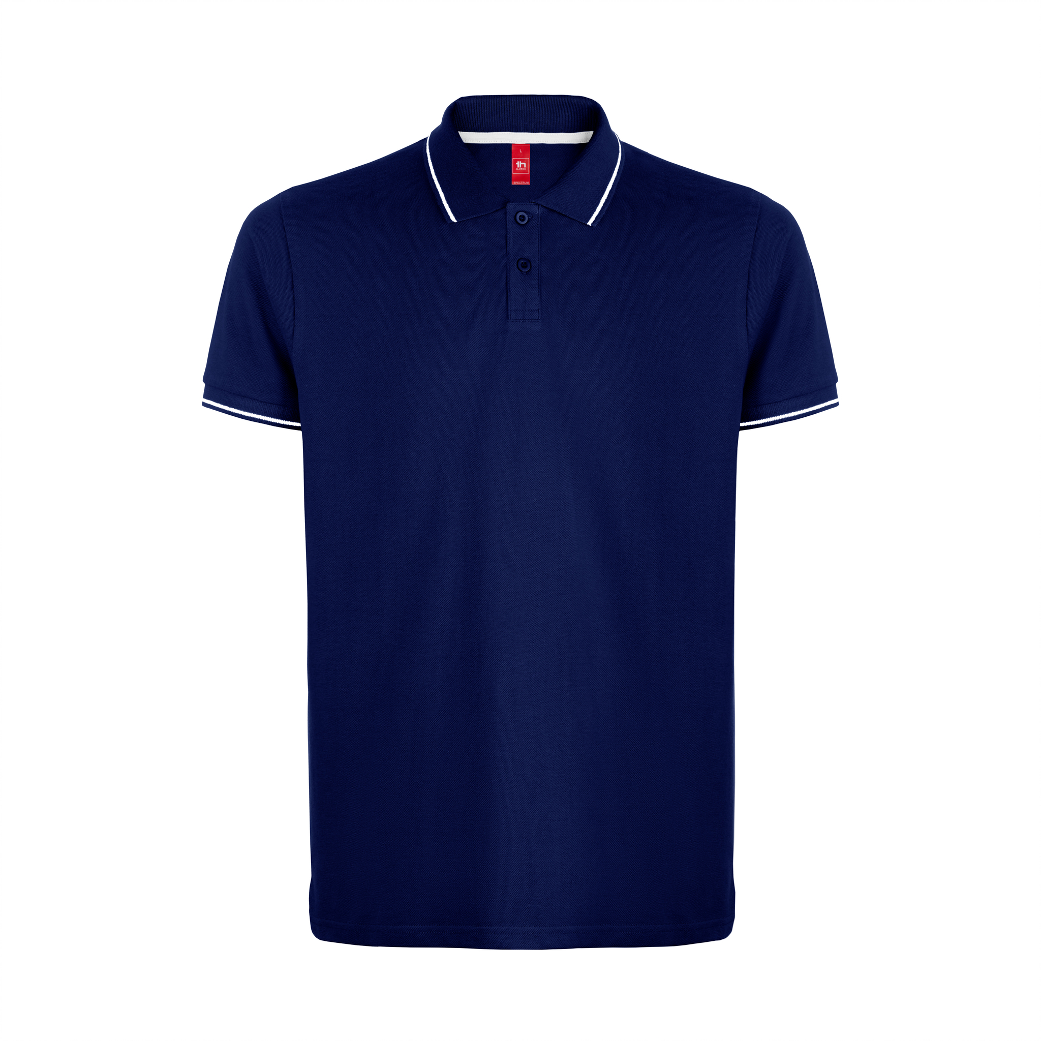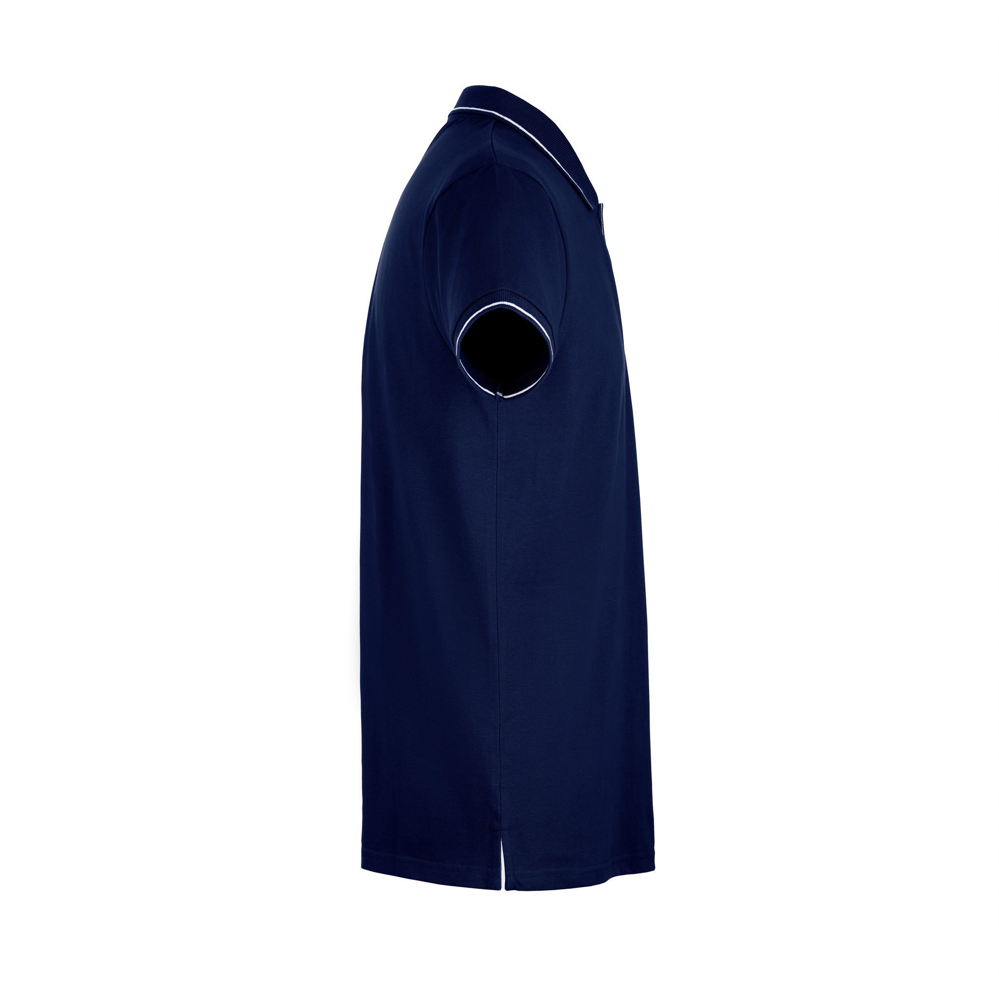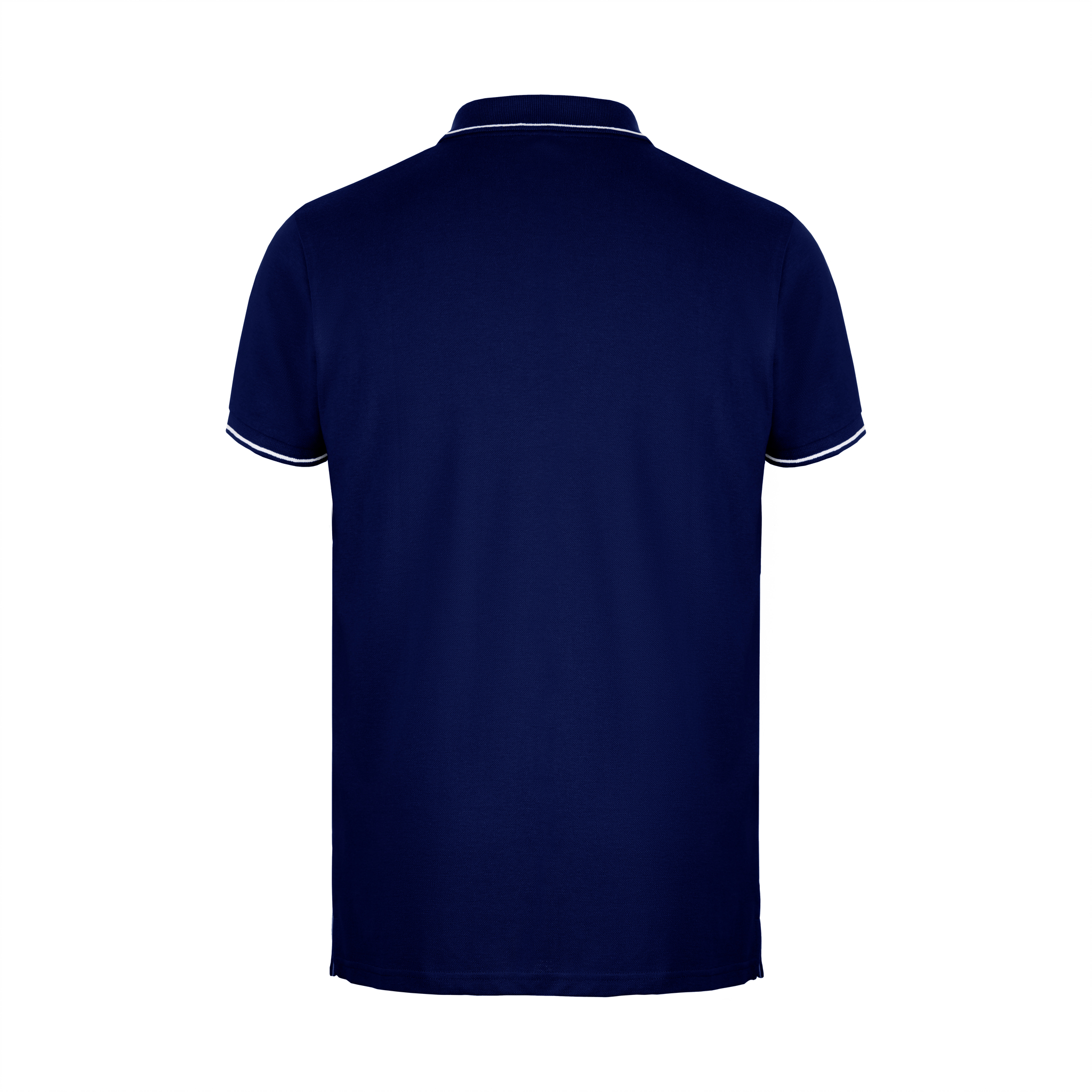 Collar and sleeves cuffs in rib 1×1 • Contrasting bicolour colour detail on the collar, reinforcing tape, placket and sleeves cuff • Short sleeves • Reinforced placet with 2 tone on tone buttons and a spare button on inside stitching • Bottom side slits in contrasting colour